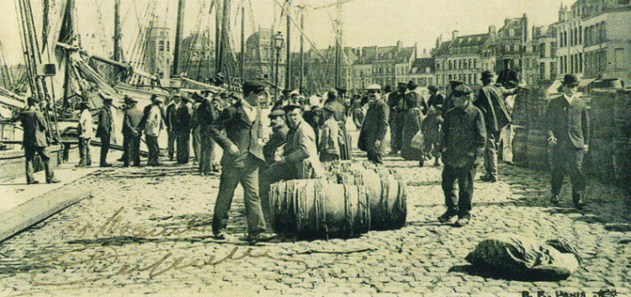 Le déchargement des morues, salées et mises en barriques