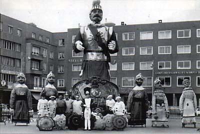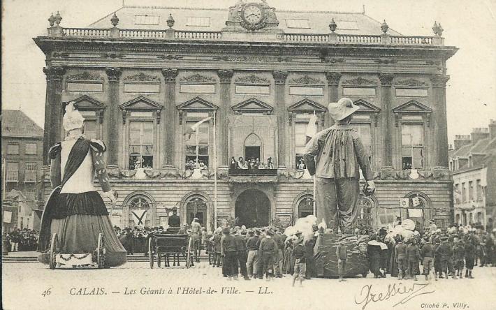 Les géants devant l'ancien hôtel de ville, photographie de Paul Villy, collection personnelle